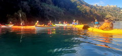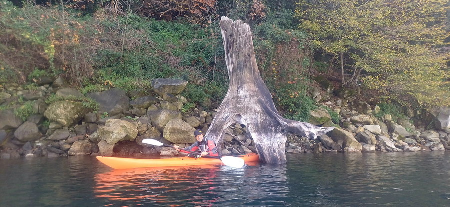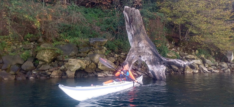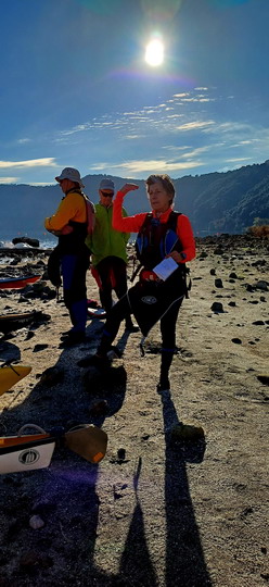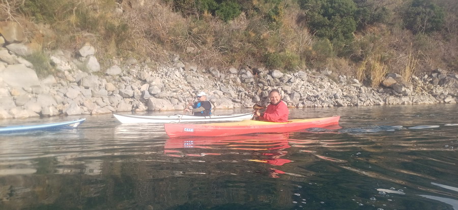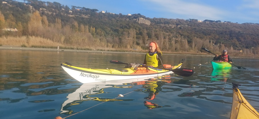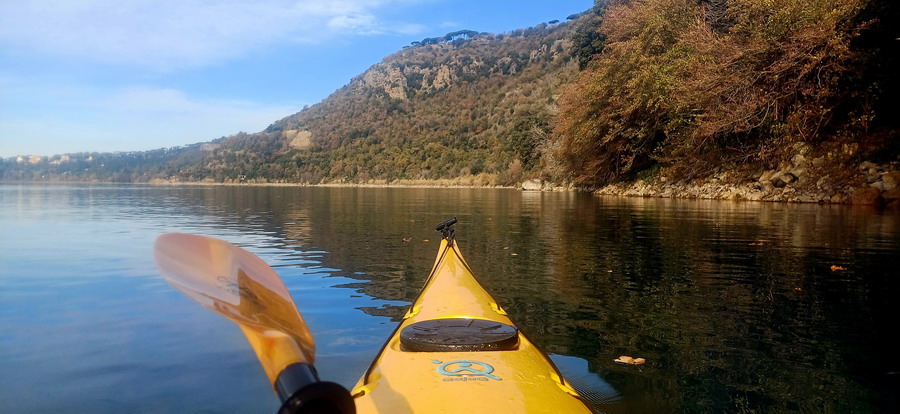 In acqua, mentre i kayak scivolavano silenziosi, Paola, da ospite perfetta del luogo, ha accompagnato il gruppo con un racconto affascinante sulla storia e le caratteristiche naturalistiche del lago: origine vulcanica, acque profonde e scure, ecosistemi delicati e quel senso di rispetto che solo certi luoghi sanno imporre senza alzare la voce. Una lezione galleggiante, con pagaia incorporata. Notiamo però che il livello dell'acqua si è notevolmente abbassato negli ultimi anni.