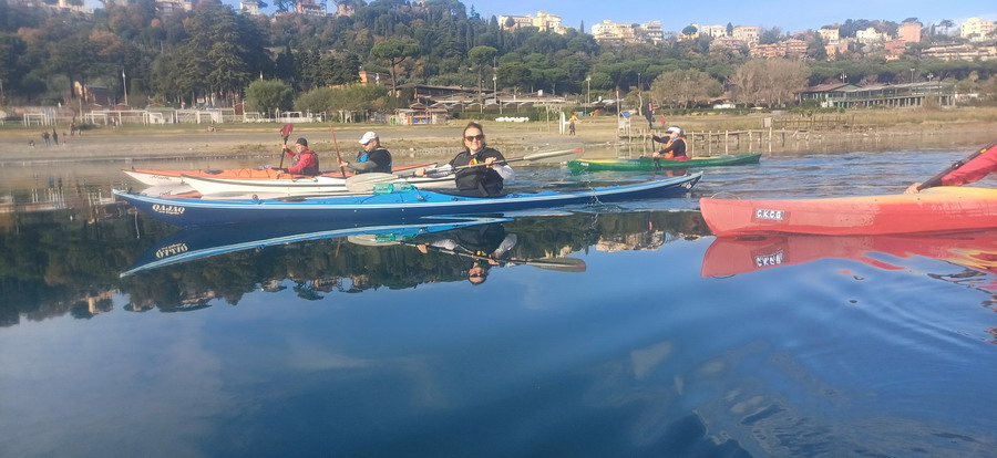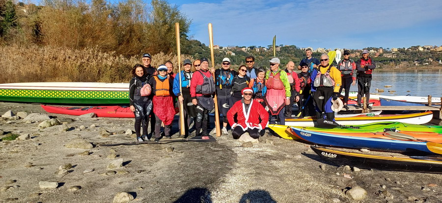 L’uscita natalizia del Gruppo Canoe Roma si è svolta nello scenario elegante e silenzioso del Lago di Castel Gandolfo che, per l’occasione, ha fatto da specchio a 20 partecipanti in kayak più 3 accompagnatori trasformando l’acqua in una tavolozza in movimento. Un piccolo arcobaleno galleggiante, ordinato quanto basta ma sempre con spirito giocoso e canoistico. Con noi anche un Babbo Natale speciale con tanto di kayak e campanelli al posto delle renne.