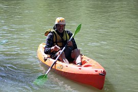 L’imbarco per fortuna è molto rapido: breve arringa (si dice briefing sorry) del Pres che spiega in inglese l’essenziale, cioè chi va in testa e non deve essere superato chi va in coda e bisogna pagaiare più di lui e chi sta in mezzo per sicurezza. In apparenza gli esperti sono tanti e mi sento tranquillo. Realizzo poi che il briefing in inglese ha spiazzato il 90% degli italici, che comunque non me lo hanno fatto notare.