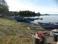 Decisi a sfruttare a nostro vantaggio il cambiamento climatico, con l'estate che non finisce mai, ci accingiamo a onorare il Canoario pagaiando nelle placide acque del lago di Bolsena. La piacevole novità rispetto alle volte precedenti è che all'uscita si uniscono i cugini del Dragolago. Il gruppo di Walter è composito, vi partecipano canoisti esperti, istruttori e principianti. In tutto siamo 26, nove del GCR e 17 del Dragolago. Appuntamento ad un orario comodo, al campeggio Perla del Lago, nel comune di Capodimonte, scelto come base di partenza e di soggiorno. Pina aveva precedentemente avvertito i titolari del campeggio, ma i partecipanti si sono organizzati in proprio, anche senza prenotazione, considerando che siamo fuori stagione. Il carrello del Dragolago è stato parcheggiato all’interno, le auto vicino alle tende (a pagamento) o appena fuori. All’imbarco del sabato ci siamo ci siamo io (Paola), Elisa, Marco I, Marco DG, Lorenzo Martinelli, Ferdinando, Stefano Nenni e Michele. Pina non può pagaiare per problemi ad una spalla, ma ci seguirà tutto il weekend da terra, mantenendo la regia. Il percorso da lei suggerito è dal campeggio verso l'isola Bisentina, circumnavigazione dell’isola, da questa ritorno verso la spiaggia del campeggio dove si farà una breve sosta pranzo. Durante la tranquilla pagaiata, ne approfittiamo per dare qualche consiglio tecnico ai neofiti che comunque sono tutti entusiasti. L'isola Bisentina appare come un gioiellino. Durante il giro abbiamo modo di ammirare un antico sepolcro (etrusco ?), visibile nell’acqua bassa. Peccato che non si possa sbarcare (le isole sono proprietà privata), ma qualcuno fa il bagno lo stesso, alcuni per rinfrescarsi altri per esercitarsi nella risalita. Forzando il "blocco" quasi fossimo una flotilla canoistica, entriamo nel porticciolo privato, arricchito di belle sculture. Dopo pranzo di nuovo in acqua verso l'altra isola, la Martana, da qui pagaiamo fino a Marta, pittoresco ex villaggio di pescatori e torniamo lungo costa. Sbarchiamo dopo 22 Km. Chi non l'ha fatto prima, monta le tende, doccia veloce e poi a tavola in campeggio. L'idea sarebbe andare alle terme a Viterbo, ma data la lentezza del servizio, prevedibile visto il numero dei commensali, si fa troppo tardi.