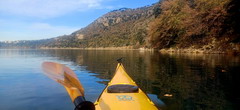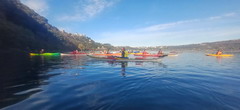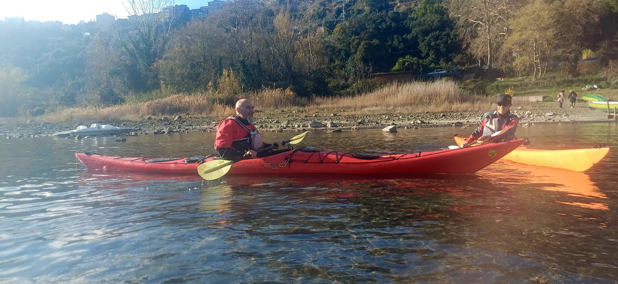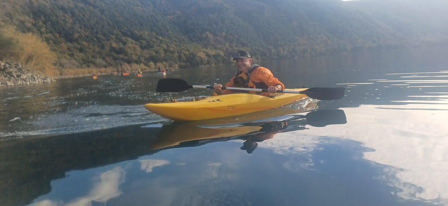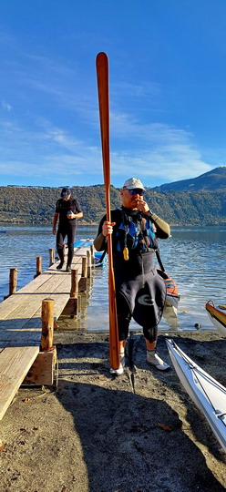 In acqua, mentre i kayak scivolavano silenziosi, Paola, da ospite perfetta del luogo, ha accompagnato il gruppo con un racconto affascinante sulla storia e le caratteristiche naturalistiche del lago: origine vulcanica, acque profonde e scure, ecosistemi delicati e quel senso di rispetto che solo certi luoghi sanno imporre senza alzare la voce. Una lezione galleggiante, con pagaia incorporata. Notiamo però che il livello dell'acqua si è notevolmente abbassato negli ultimi anni.