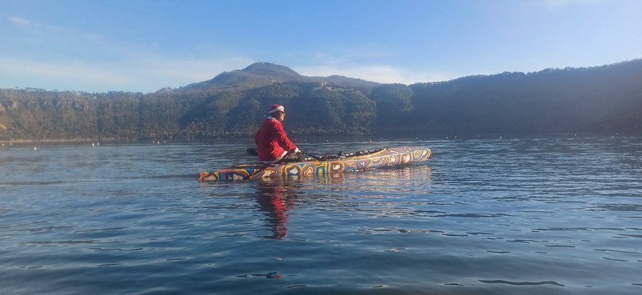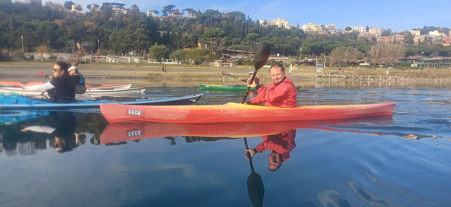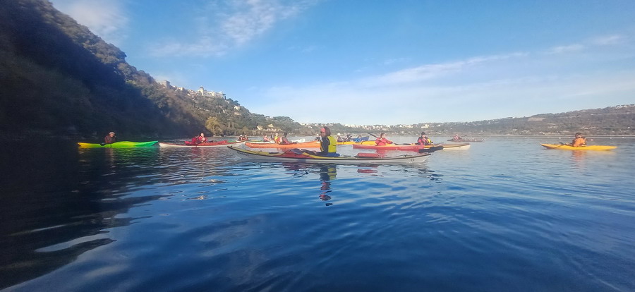 L’uscita natalizia del Gruppo Canoe Roma si è svolta nello scenario elegante e silenzioso del Lago di Castel Gandolfo che, per l’occasione, ha fatto da specchio a 20 partecipanti in kayak più 3 accompagnatori trasformando l’acqua in una tavolozza in movimento. Un piccolo arcobaleno galleggiante, ordinato quanto basta ma sempre con spirito giocoso e canoistico. Con noi anche un Babbo Natale speciale con tanto di kayak e campanelli al posto delle renne.