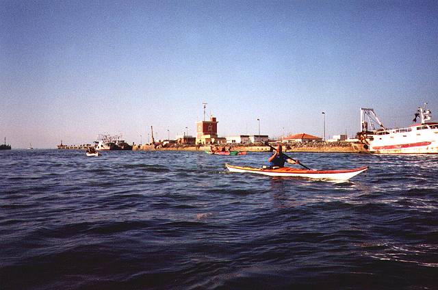 La giornata è davvero spettacolare e con un mare fin troppo calmo. In un'ora e quarantacinque raggiungiamo, dopo 11,5 km, il porto canale di Fiumicino, punto previsto per il cambio degli equipaggi. Ci stanno aspettando Antonio e Tommaso. Breve ma intenso spuntino e siamo pronti per la seconda parte della giornata. Chicca e Pietro ci salutano e lasciano i loro posti ai nuovi arrivati quindi ora sulla quattro posti ci sono Licia, Sandra, Tommaso e Antonio mentre Daniele e Meri vanno sul K2.