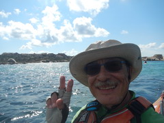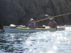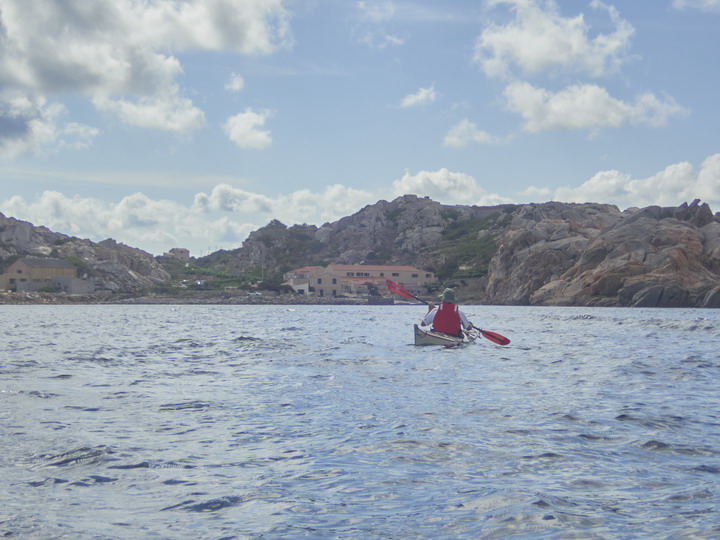 Una volta tornati in canoa, continuiamo il periplo dell'isola: lungo il suo versante occidentale non ci sono sbarchi possibili, così come su quello settentrionale. Ora siamo più esposti alla brezza che arriva da Ponente e il mare è un po' più vivace, ma non ci crea difficoltà particolari. Superata Cala Piscìoli, lasciamo alla nostra sinistra l'isola di Spargiotto; di fronte a noi la Corsica con le sue alte cime e le bianche scogliere di Bonifacio. Superiamo Punta Zanotto (12,6 Km), punto più a Nord di Spargi e percorriamo il versante Nord fino a Punta Bonifazzinca (14 Km), da qui in breve siamo a Punta Rossa, da dove ci "stacchiamo" per la traversata di ritorno verso La Maddalena: c'è il solito traffico, ma questa volta è con noi una gentile e brava "baywatch" del Parco che ci scorta con la sua moto d'acqua. In breve siamo di nuovo a Punta Testiccioli (17 Km) e non ci resta che rientrare all'Abbatoggia dove sbarchiamo alle 16:30, dopo aver percorso in tutto 22,0 Km.