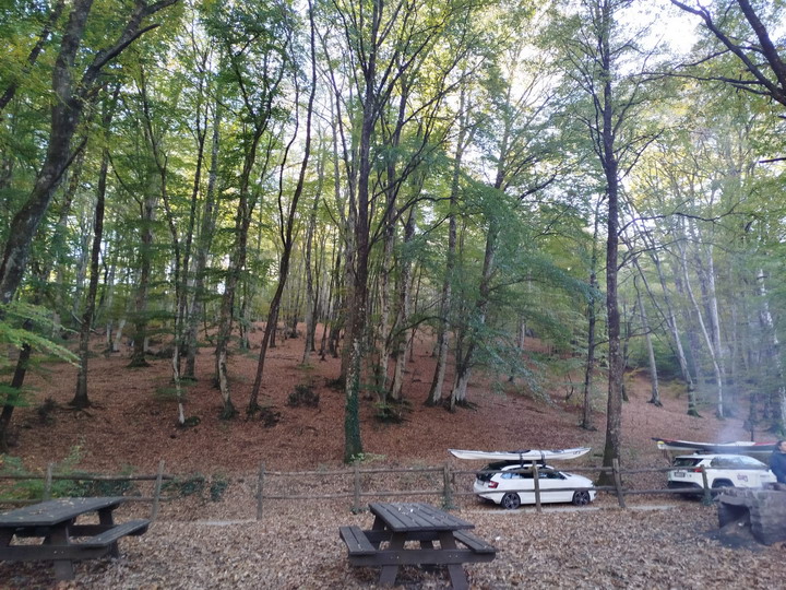 Ci rivestiamo e carichiamo in fretta: abbiamo un appuntamento con Marco I. che stavolta non ha pagaiato, ma ha fatto la spesa e preparato la brace in un area picnic attrezzata con barbecue, nella faggeta alla base del Monte Venere. All'arrivo, oltre all’invitante odorino della carne, salutiamo con affetto anche il maestro Antonio, che è arrivato a sorpresa con famiglia proveniente dalla sua seconda residenza in quel di Nepi. Ha portato anche lui delle salsicce molto apprezzate insieme ad insalata del suo orto. Nel bosco fa veramente freddo, ma noi ci scaldiamo al fuoco della brace e dell'amicizia. Concludiamo con un Brindisi al GCR. con il prosecco portato da Michele e con la crostata di Rossella.