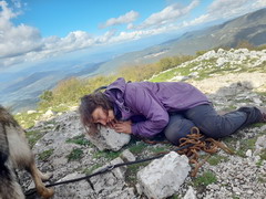 Al termine della strada asfaltata parcheggiamo e ci incamminiamo lungo il sentiero 303, dal fondo un po’ scomodo a dire il vero, che si addentra nel bosco (prestando attenzione al punto in cui il tracciato piega verso destra) fino al Pratone (circa 850 m slm). Da lì attraversiamo il pianoro per andare a imboccare il sentiero 305 che sale fra la vegetazione per poi sbucare fuori dal bosco, ormai in vista della vetta, dove arriviamo in breve (1275 m slm).